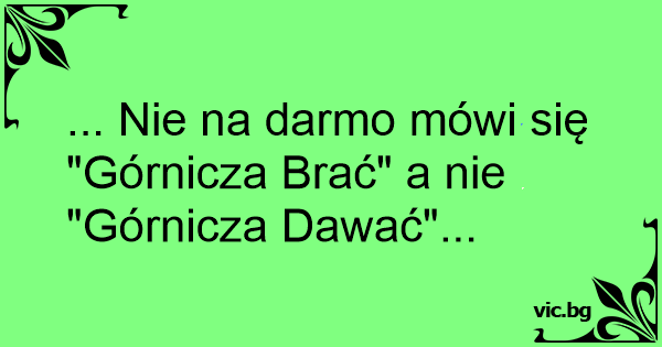 ... Nie na darmo mówi się "Górnicza Brać" a nie "Górnicza Dawać"...