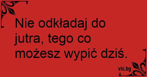 Nie odkładaj do jutra, tego co możesz wypić dziś.