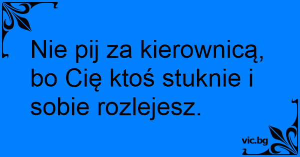Nie pij za kierownicą, bo Cię ktoś stuknie i sobie rozlejesz.
