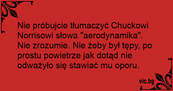 Nie próbujcie tłumaczyć Chuckowi Norrisowi słowa "aerodynamika". Nie zrozumie. Nie żeby był tępy, po prostu powietrze jak dotąd nie odważyło się stawiać mu oporu.