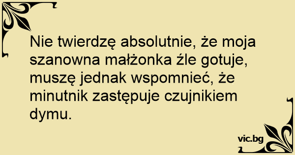 Nie twierdzę absolutnie, że moja szanowna małżonka źle gotuje, muszę jednak wspomnieć, że minutnik zastępuje czujnikiem dymu.