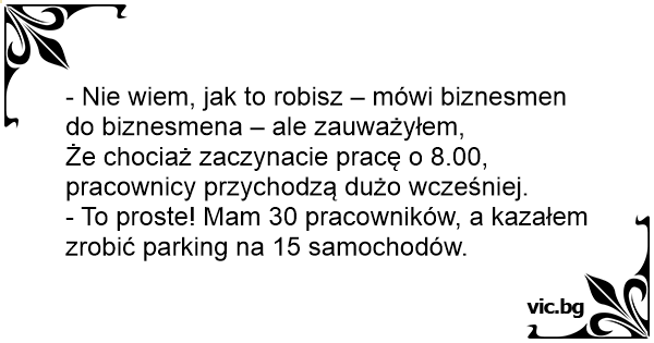 - Nie wiem, jak to robisz – mówi biznesmen do biznesmena – ale zauważyłem,