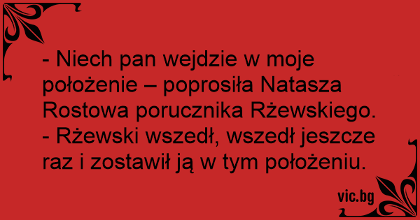 - Niech pan wejdzie w moje położenie – poprosiła Natasza Rostowa porucznika Rżewskiego.