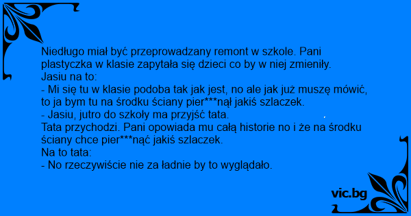 Tata przychodzi. Pani opowiada mu całą historie no i że na środku ściany chce pier***nąć jakiś szlaczek.