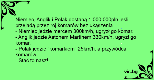 - Polak jedzie "komarkiem" 25km/h, a przywódca komarów: