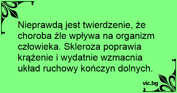 Nieprawdą jest twierdzenie, że choroba źle wpływa na organizm człowieka. Skleroza poprawia krążenie i wydatnie wzmacnia układ ruchowy kończyn dolnych.