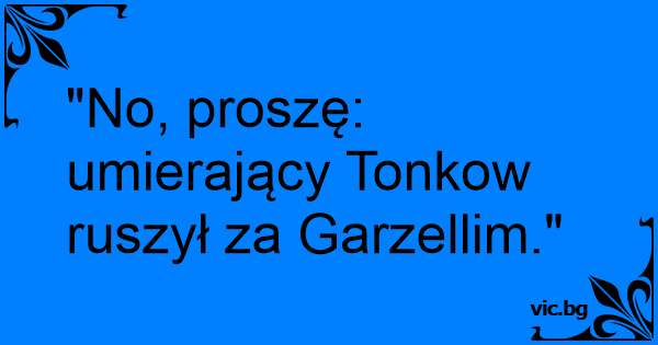 "No, proszę: umierający Tonkow ruszył za Garzellim."