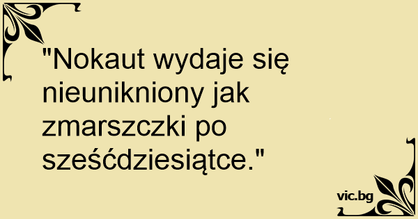 "Nokaut wydaje się nieunikniony jak zmarszczki po sześćdziesiątce."