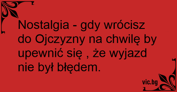 Nostalgia - gdy wrócisz do Ojczyzny na chwilę by upewnić się , że wyjazd nie był błędem.
