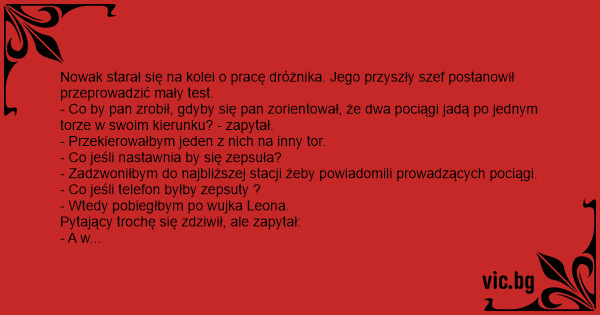 Nowak starał się na kolei o pracę dróżnika. Jego przyszły szef postanowił przeprowadzić mały test.
