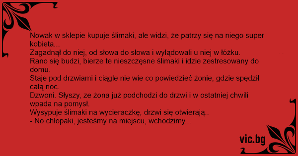 Rano się budzi, bierze te nieszczęsne ślimaki i idzie zestresowany do domu.