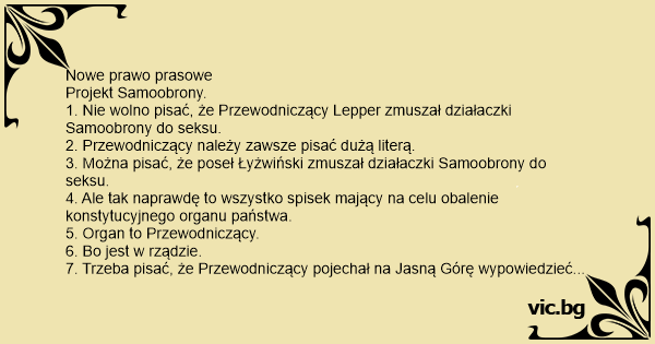1. Nie wolno pisać, że Przewodniczący Lepper zmuszał działaczki Samoobrony do seksu.