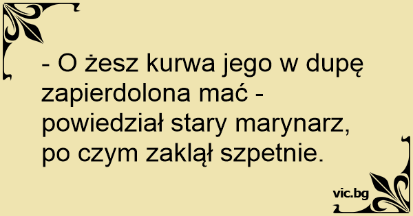 - O żesz kurwa jego w dupę zapierdolona mać - powiedział stary marynarz, po czym zaklął szpetnie.