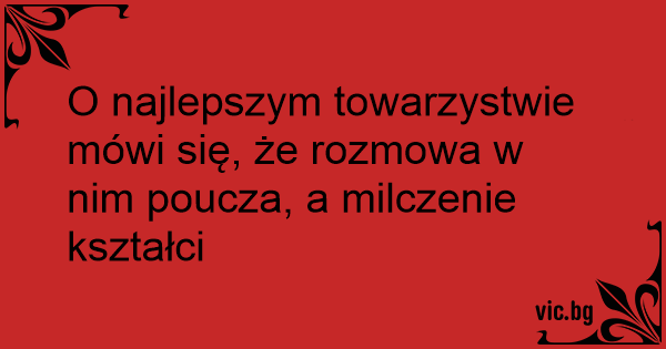 O najlepszym towarzystwie mówi się, że rozmowa w nim poucza, a milczenie kształci