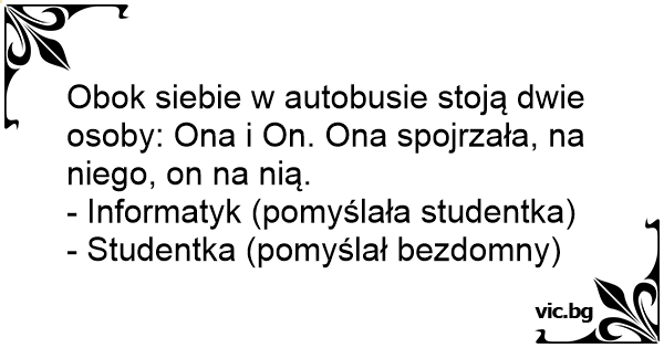 Obok siebie w autobusie stoją dwie osoby: Ona i On. Ona spojrzała, na niego, on na nią.