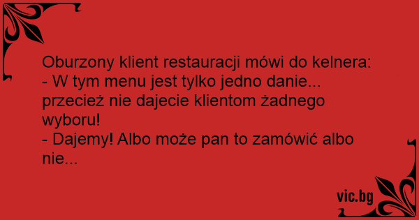 - W tym menu jest tylko jedno danie... przecież nie dajecie klientom żadnego wyboru!