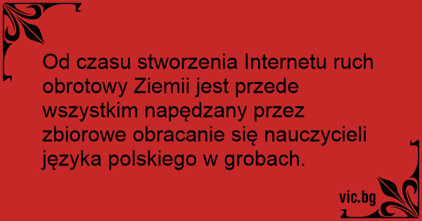 Od czasu stworzenia Internetu ruch obrotowy Ziemii jest przede wszystkim napędzany przez zbiorowe obracanie się nauczycieli języka polskiego w grobach.