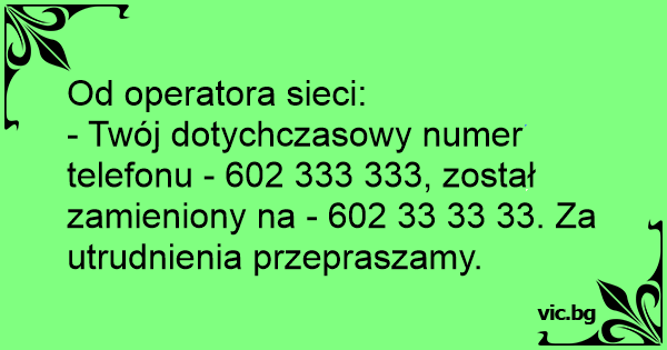 - Twój dotychczasowy numer telefonu - 602 333 333, został zamieniony na - 602 33 33 33. Za utrudnienia przepraszamy.
