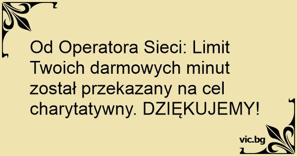 Od Operatora Sieci: Limit Twoich darmowych minut został przekazany na cel charytatywny. DZIĘKUJEMY!