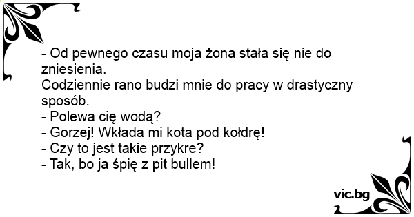 - Gorzej! Wkłada mi kota pod kołdrę!