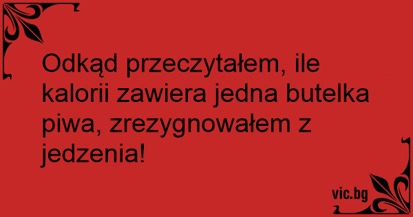 Odkąd przeczytałem, ile kalorii zawiera jedna butelka piwa, zrezygnowałem z jedzenia!