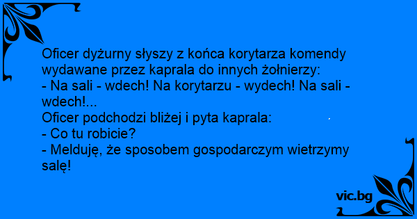 Oficer dyżurny słyszy z końca korytarza komendy wydawane przez kaprala do innych żołnierzy: