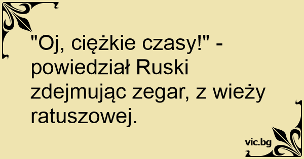 "Oj, ciężkie czasy!" - powiedział Rusкi zdejmując zegar, z wieży ratuszowej.