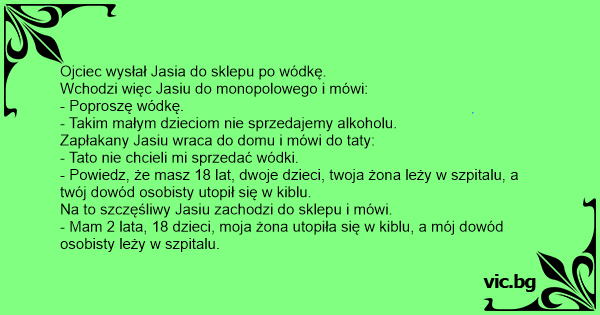 Na to szczęśliwy Jasiu zachodzi do sklepu i mówi.