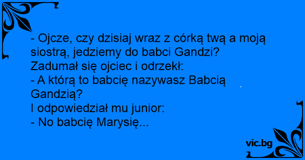 - Ojcze, czy dzisiaj wraz z córką twą a moją siostrą, jedziemy do babci Gandzi?