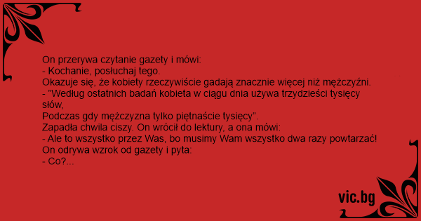 - ”Według ostatnich badań kobieta w ciągu dnia używa trzydzieści tysięcy słów,
