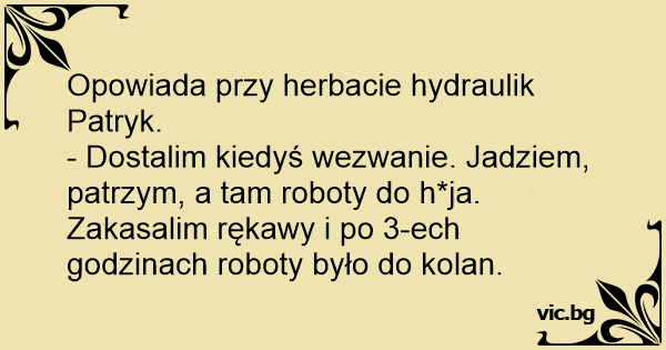 - Dostalim kiedyś wezwanie. Jadziem, patrzym, a tam roboty do h*ja. Zakasalim rękawy i po 3-ech godzinach roboty było do kolan.
