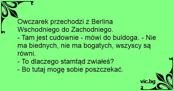 - Tam jest cudownie - mówi do buldoga. - Nie ma biednych, nie ma bogatych, wszyscy są równi.