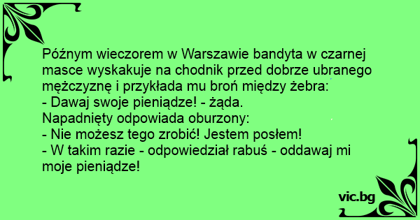 - W takim razie - odpowiedział rabuś - oddawaj mi moje pieniądze!