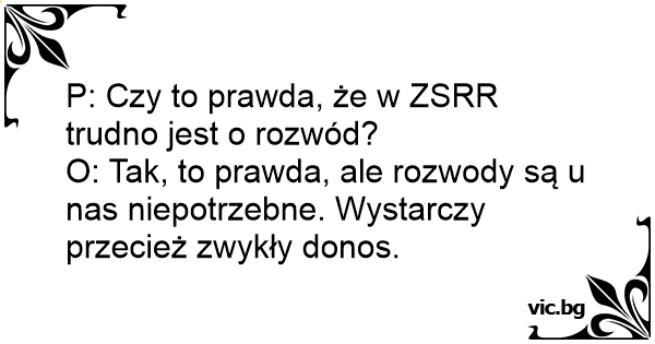 O: Tak, to prawda, ale rozwody są u nas niepotrzebne. Wystarczy przecież zwykły donos.
