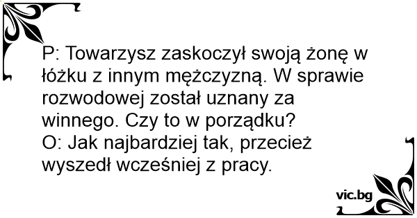 P: Towarzysz zaskoczył swoją żonę w łóżku z innym mężczyzną. W sprawie rozwodowej został uznany za winnego. Czy to w porządku?