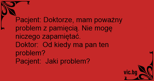 Pacjent: Doktorze, mam poważny problem z pamięcią. Nie mogę niczego zapamiętać.