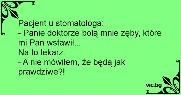 - Panie doktorze bolą mnie zęby, które mi Pan wstawił...