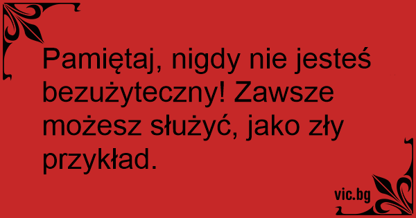 Pamiętaj, nigdy nie jesteś bezużyteczny! Zawsze możesz służyć, jako zły przykład.
