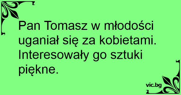 Pan Tomasz w młodości uganiał się za kobietami. Interesowały go sztuki piękne.