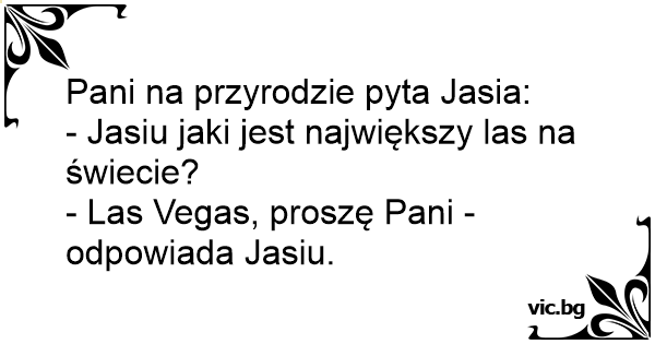 - Las Vegas, proszę Pani - odpowiada Jasiu.