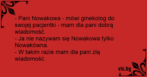 - Pani Nowakowa - mówi ginekolog do swojej pacjentki - mam dla pani dobrą wiadomość.