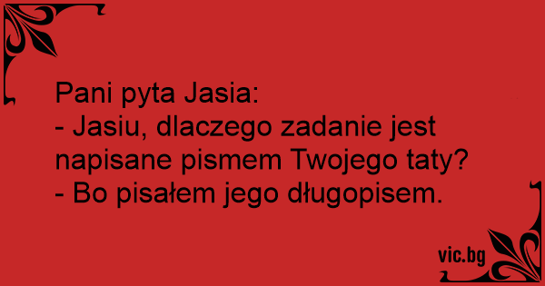 - Jasiu, dlaczego zadanie jest napisane pismem Twojego taty?