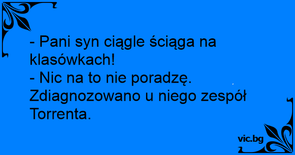 - Nic na to nie poradzę. Zdiagnozowano u niego zespół Torrenta.