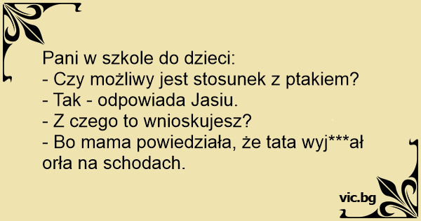 - Bo mama powiedziała, że tata wyj***ał orła na schodach.