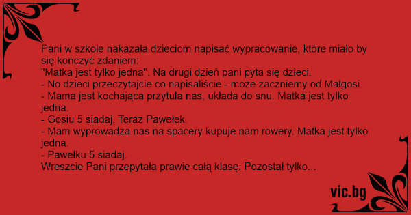 "Matka jest tylko jedna". Na drugi dzień pani pyta się dzieci.