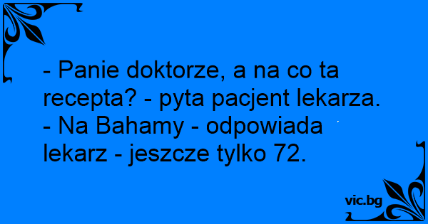 - Panie doktorze, a na co ta recepta? - pyta pacjent lekarza.