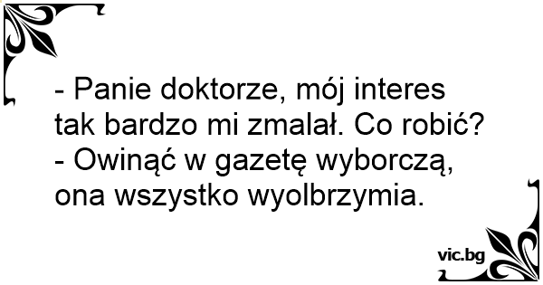 - Panie doktorze, mój interes tak bardzo mi zmalał. Co robić?