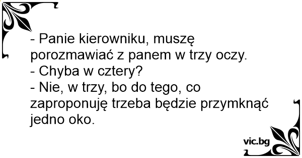 - Panie kierowniku, muszę porozmawiać z panem w trzy oczy.