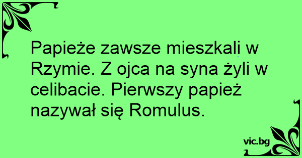Papieże zawsze mieszkali w Rzymie. Z ojca na syna żyli w celibacie. Pierwszy papież nazywał się Romulus.