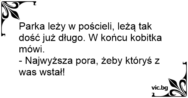 Parka leży w pościeli, leżą tak dość już długo. W końcu kobitka mówi.